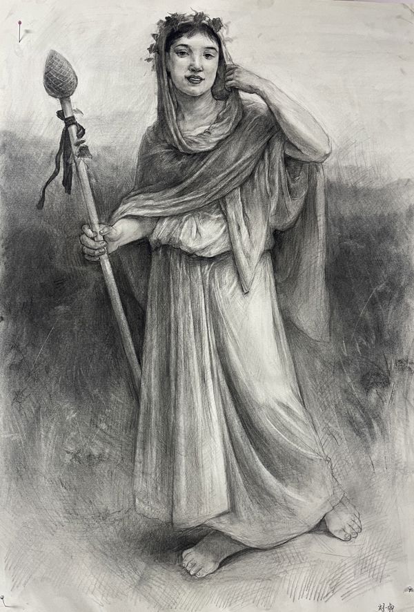 画中是希腊故事中的一位人物,有人认为她是古希腊阿里亚斯公主,也有人说他是希腊神话中酒神道尼苏斯(Dionysos)众说纷纭