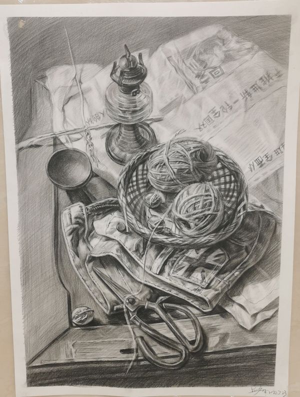 静物素描掌握方法其实画起来是很容易的,这幅作品把静物质感、空间、固有色都发挥的很出色