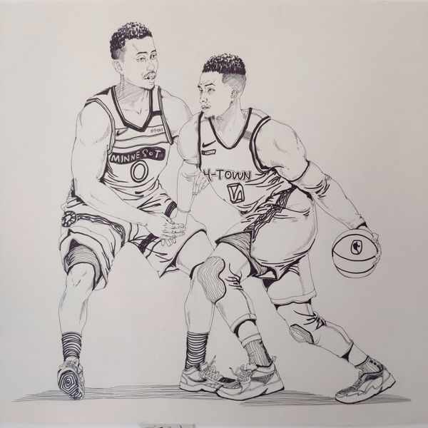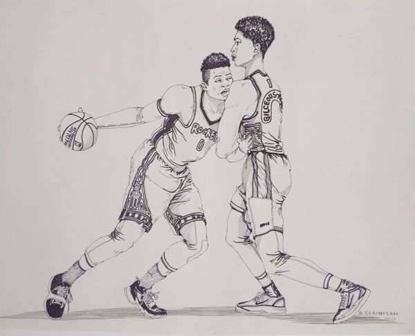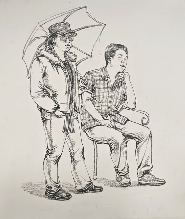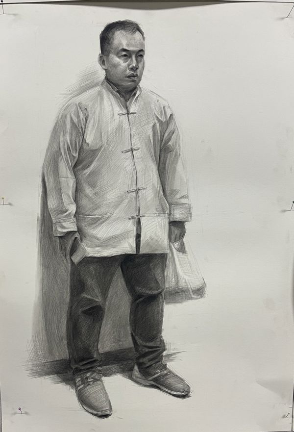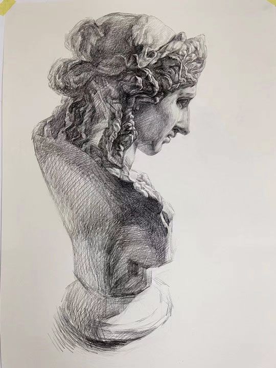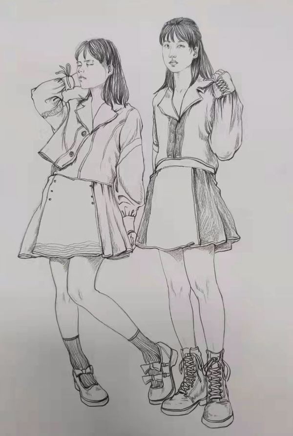人物比列协调,侧脸、上衣与手臂的细节刻画很好