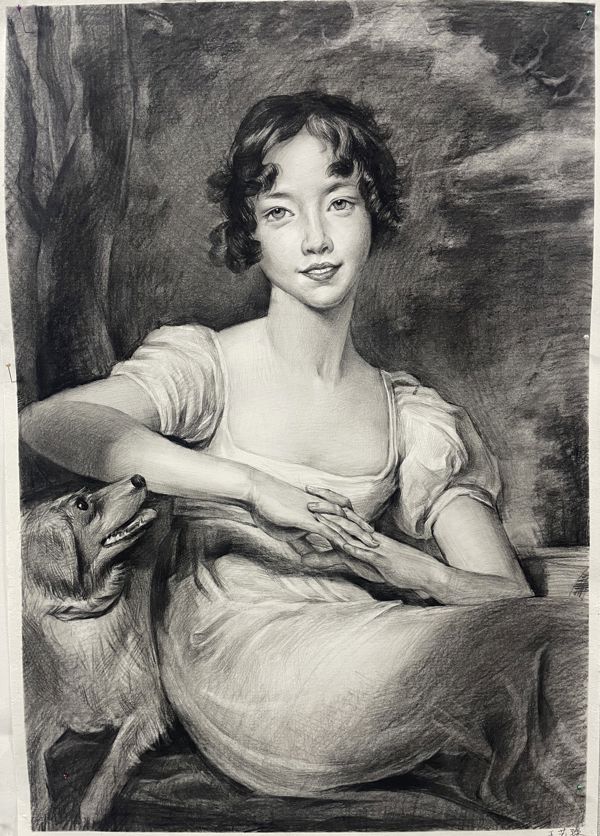 人物比例处理的好,脸部、双手处理的自然,坐姿这各难以表现的角度都可以整体上把女生匀称的身材处理的恰到好处