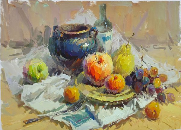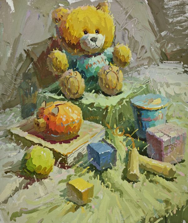 物体体积感很强,松紧虚实的处理手法很好,纯灰关系明确