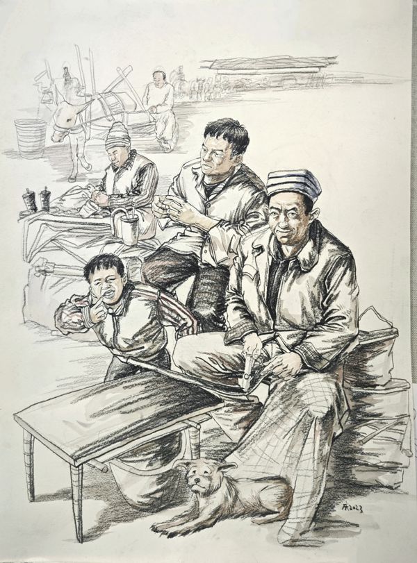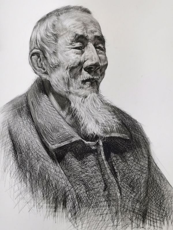 这幅画是女中老年人像,学过画画都知道女中老年是不好表现的,但这幅做到了结构骨点与面部垂坠把握刚刚好
