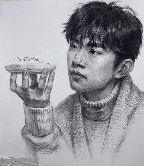 联考与当下主流审美碰撞的产物。画者将模特易烊千玺的结构点与骨点处理得当的同时,又充分的体现了强烈自我的绘画意识